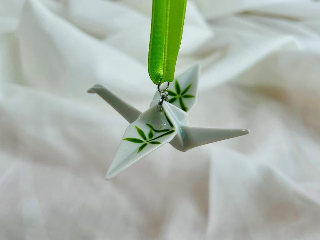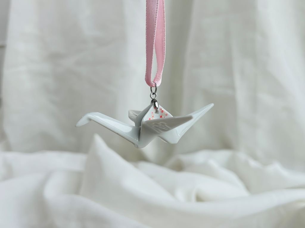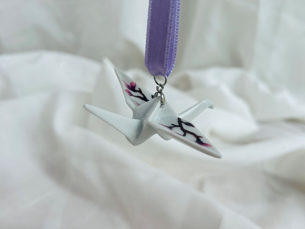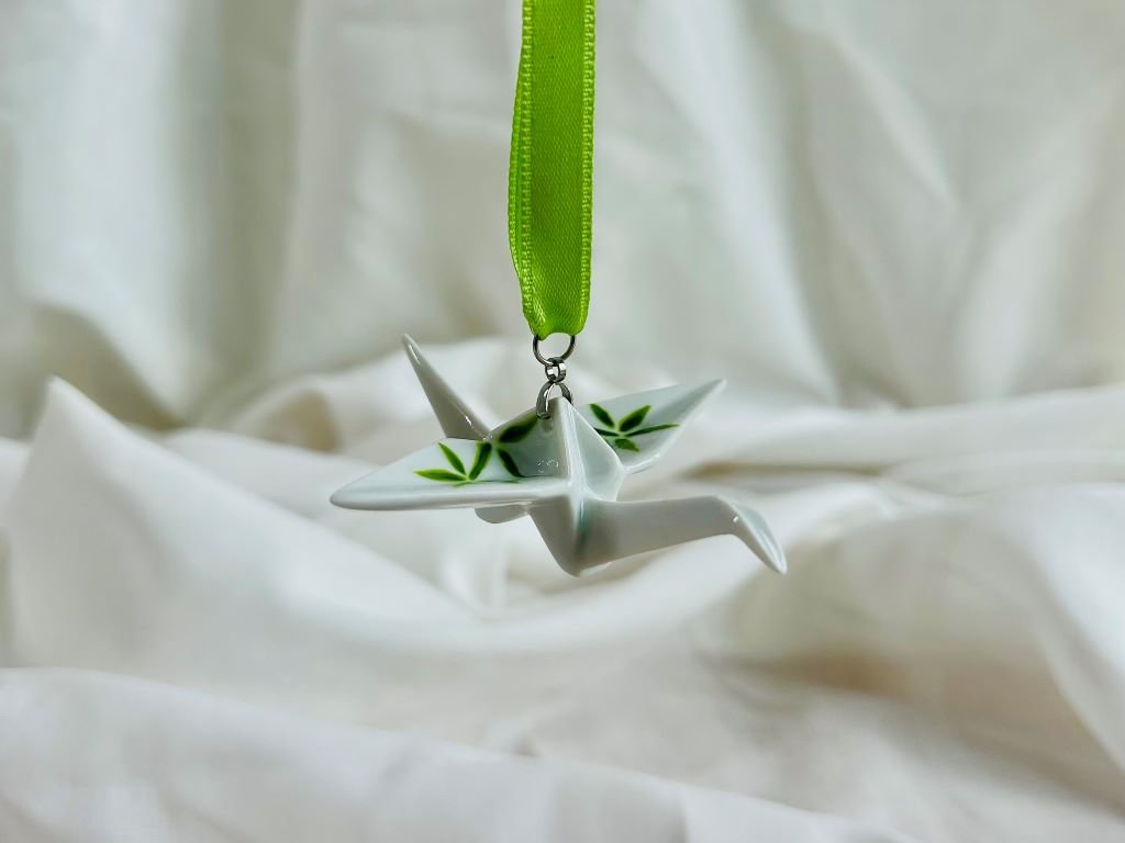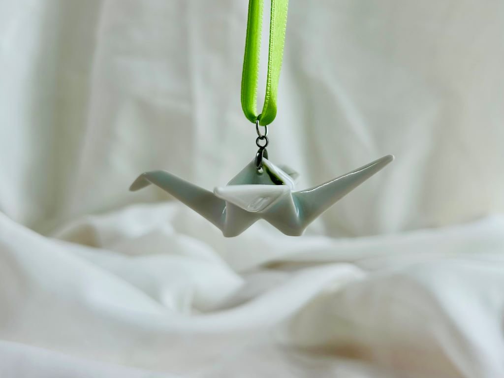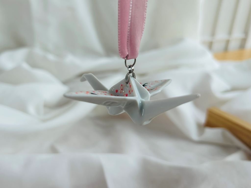 Jeřáb má rozpětí křídel cca 8 cm a byl vyroben v české porcelánce.
