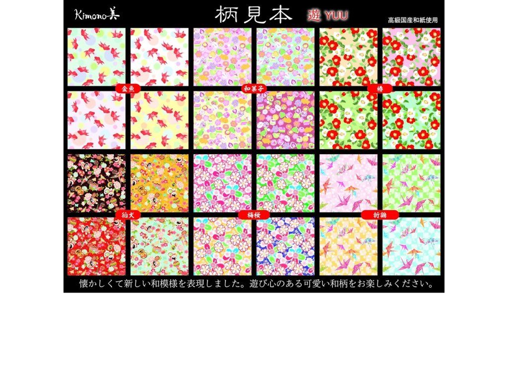 Krásné vzory inspirované vzory z kimon a japonské estetiky (příroda, sladkosti, jeřáby, retro, abstrakce...).